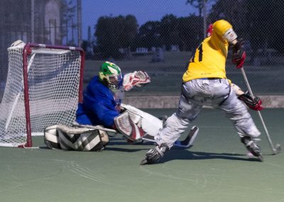 Both teams had differing ideas on when the game was supposed to start. Unicorns goalie Taylor Newton arrived moments before the game was set to start. Meanwhile, Krakens goalie Chad Miller showed up to the rink around noon. Both goalies were ready around the same time.