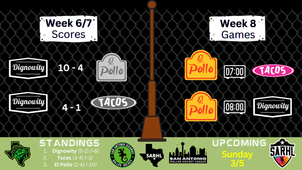 Last week we played the rescheduled games and to the best of my knowledge, here are the scores reported. This week will have El Pollo play it’s second double header of the season starting with Tacos and ending with Dignowity.