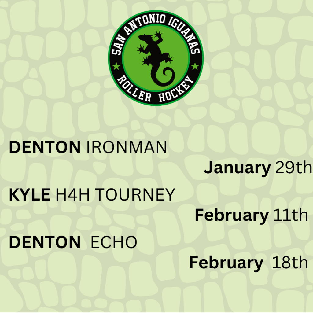 Denton Ironman: This last weekend (1/28) the SA Iguanas competed at the Denton Ironman tournament. The team consisted of skaters: JR Yupanqui, Jaiden Hernadez, Ray Ortega, and Brian Callahan with Taylor Newton in goal. The team played in the Bronze division skating in 4 round robin games and 2 playoff games going against teams from Fort Worth, Houston, Arlington, Waco and Denton. The Iguanas will be returning to Denton to compete in the Echo Tournament on February 11th.