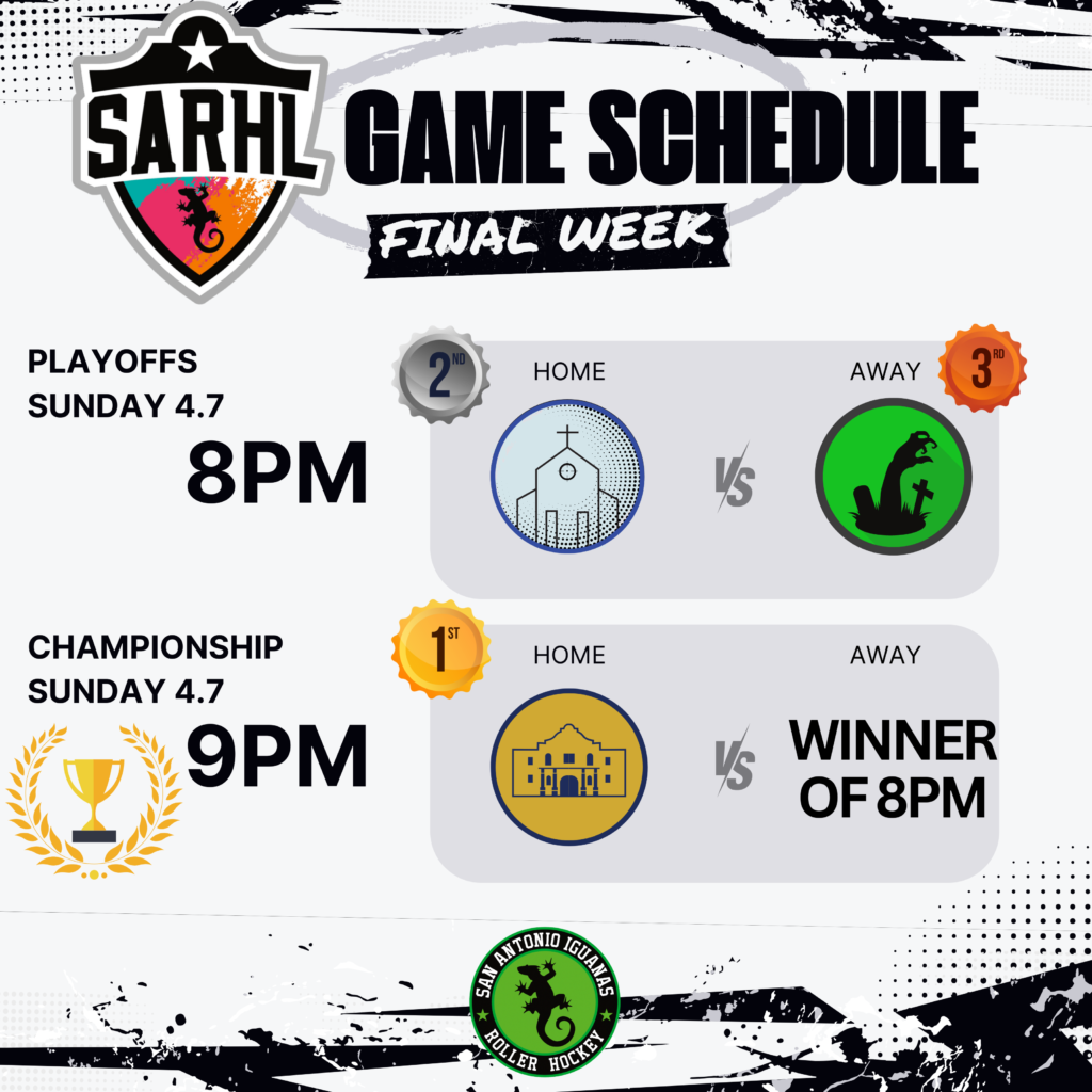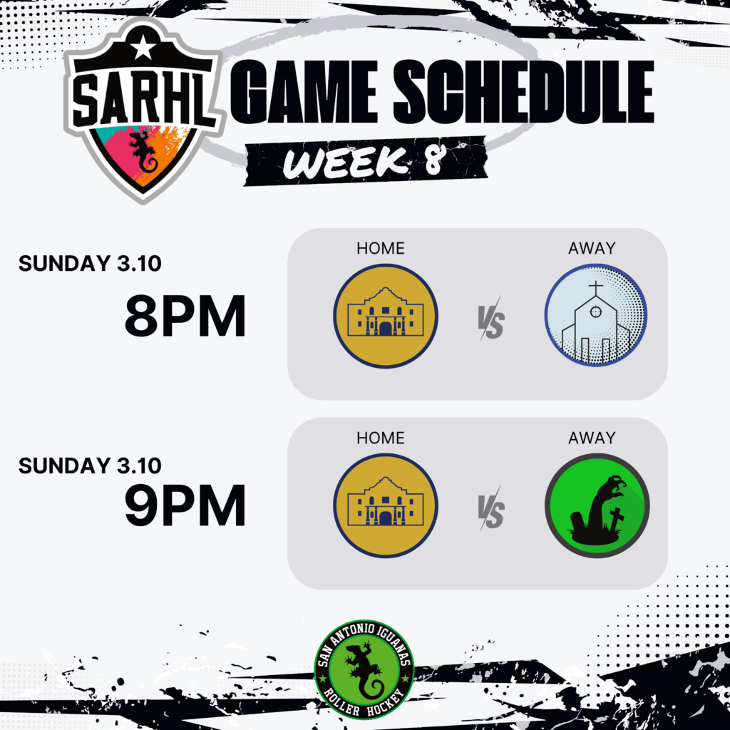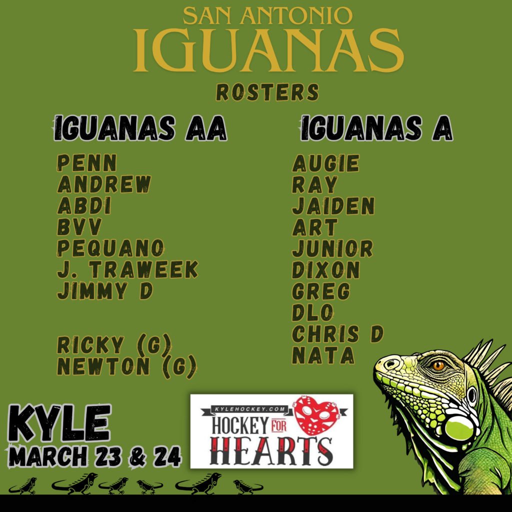 This upcoming Sunday, March 24th, will be PICKUP ONLY, as the SARHL-Iguanas compete in the Hockey-4-Hearts tournament in Kyle, Texas.