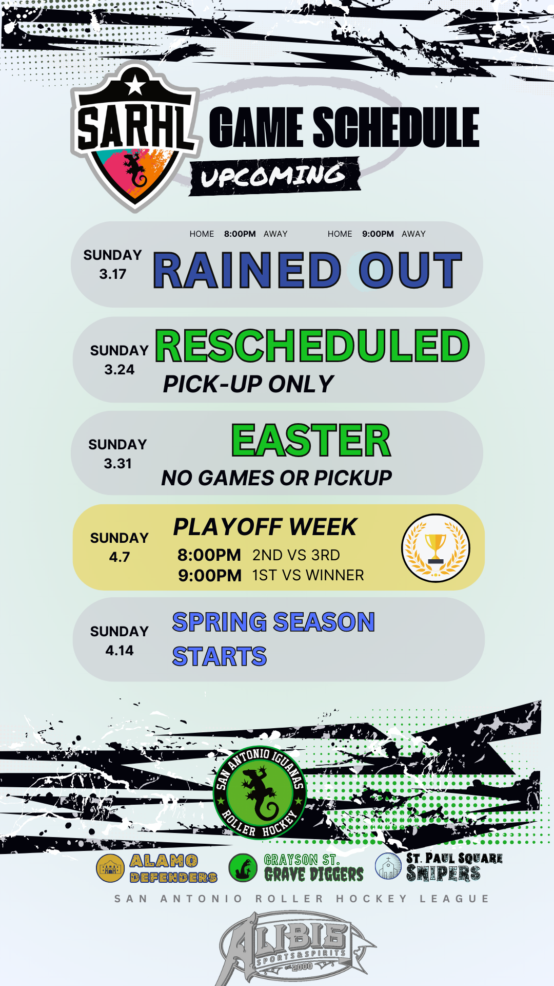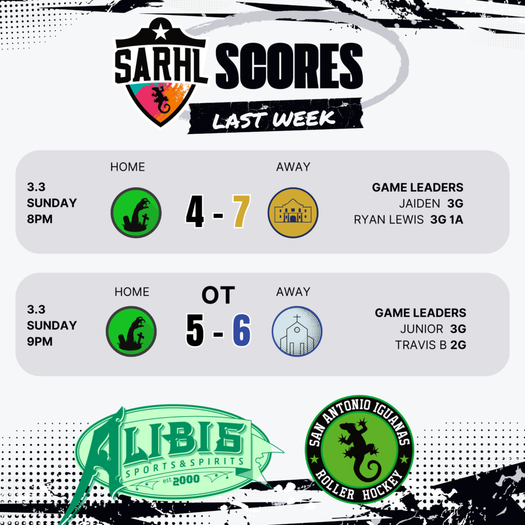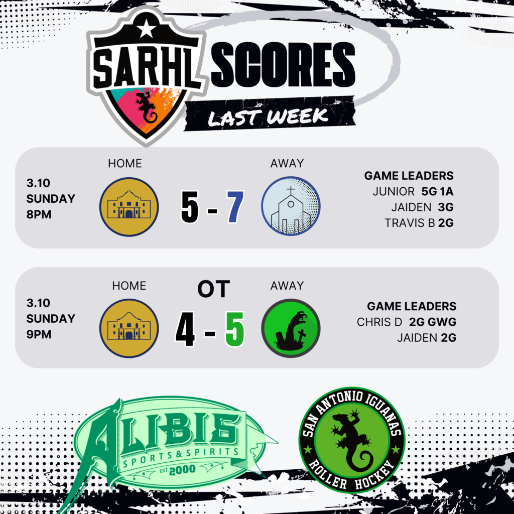 This upcoming Sunday, March 24th, will be PICKUP ONLY, as the SARHL-Iguanas compete in the Hockey-4-Hearts tournament in Kyle, Texas.