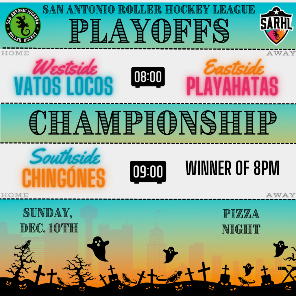 Championship Game will be this Friday Night (12/22) at 9:15PM! Come support your roller hockey friends as they battle against UTSA at Northwoods this weekend!
